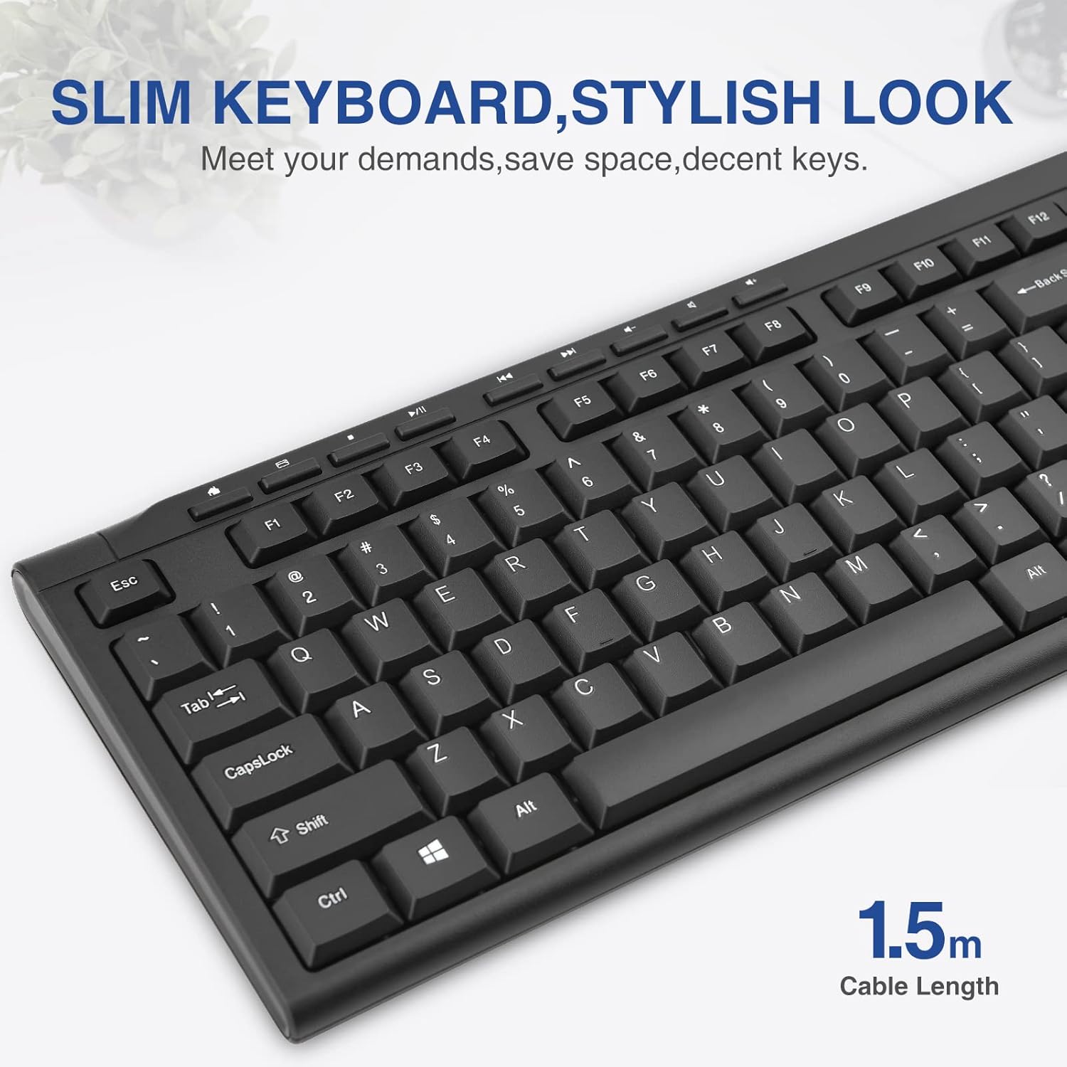Rii RK907 Ultra-Slim Compact USB Wired Keyboard for Mac and PC,Windows 10/8 / 7 / Vista/XP (Black) (1PCS)