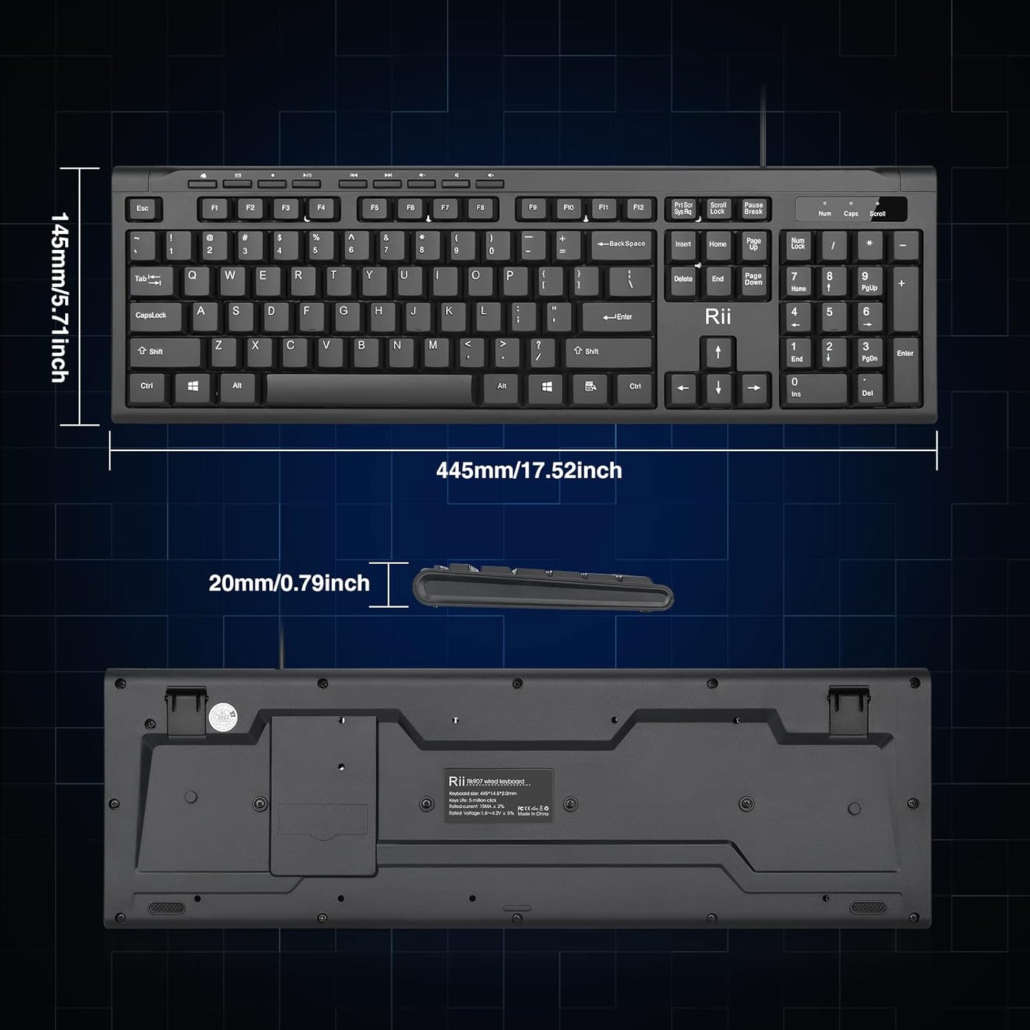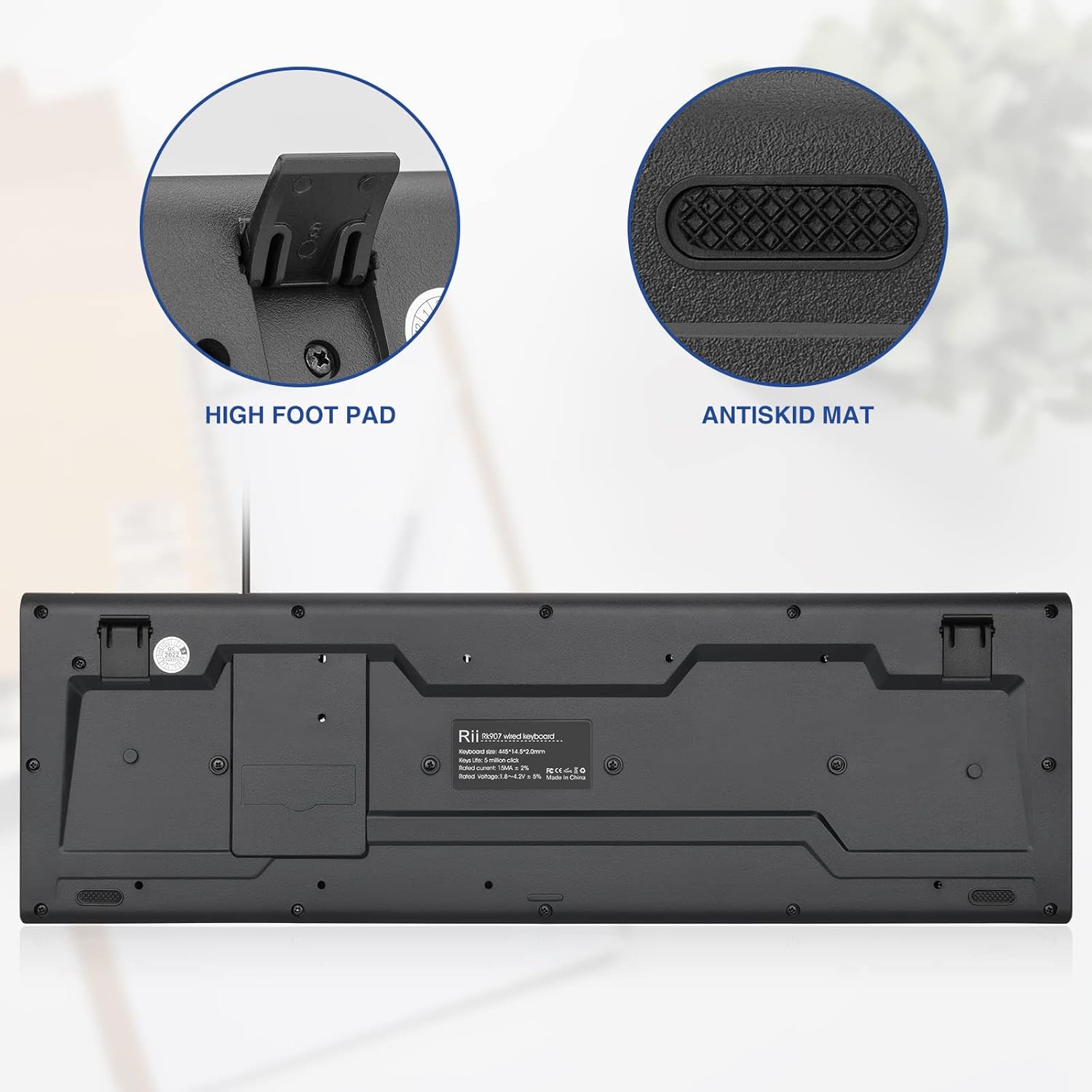 The Rii RK907 features a standard layout with full-size keys, making it comfortable and easy to use for everyday tasks. The USB wired connection ensures a stable and reliable connection to your computer, so you can type with confidence.