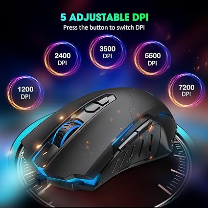 - High-Precision DPI & Polling Rateh: Gaming mouse run flawlessly with optical sensor and avoids random clicks. Adjust DPI 1200-7200, polling rate125-1000Hz to provide precise cursor movements for gameplay